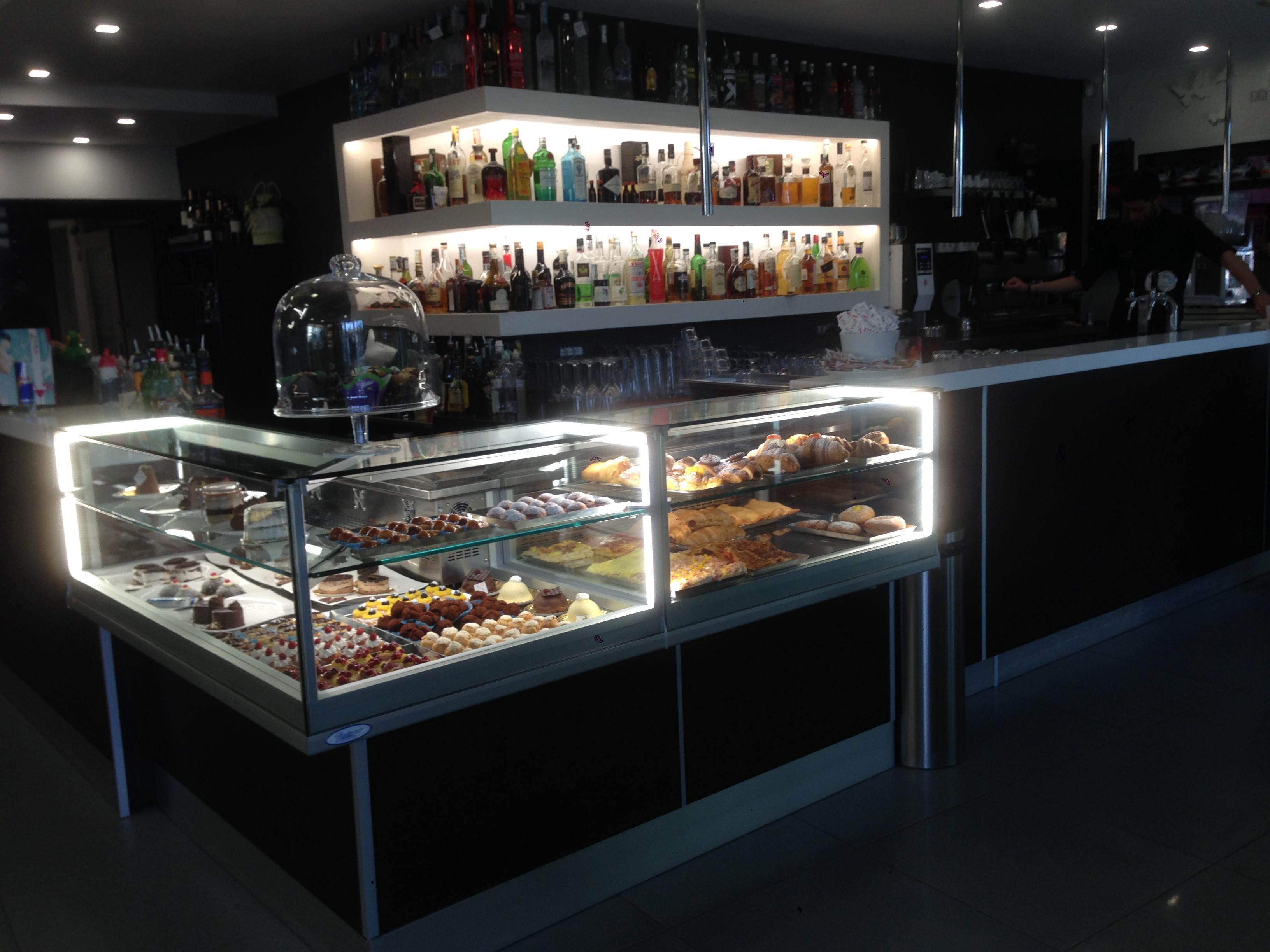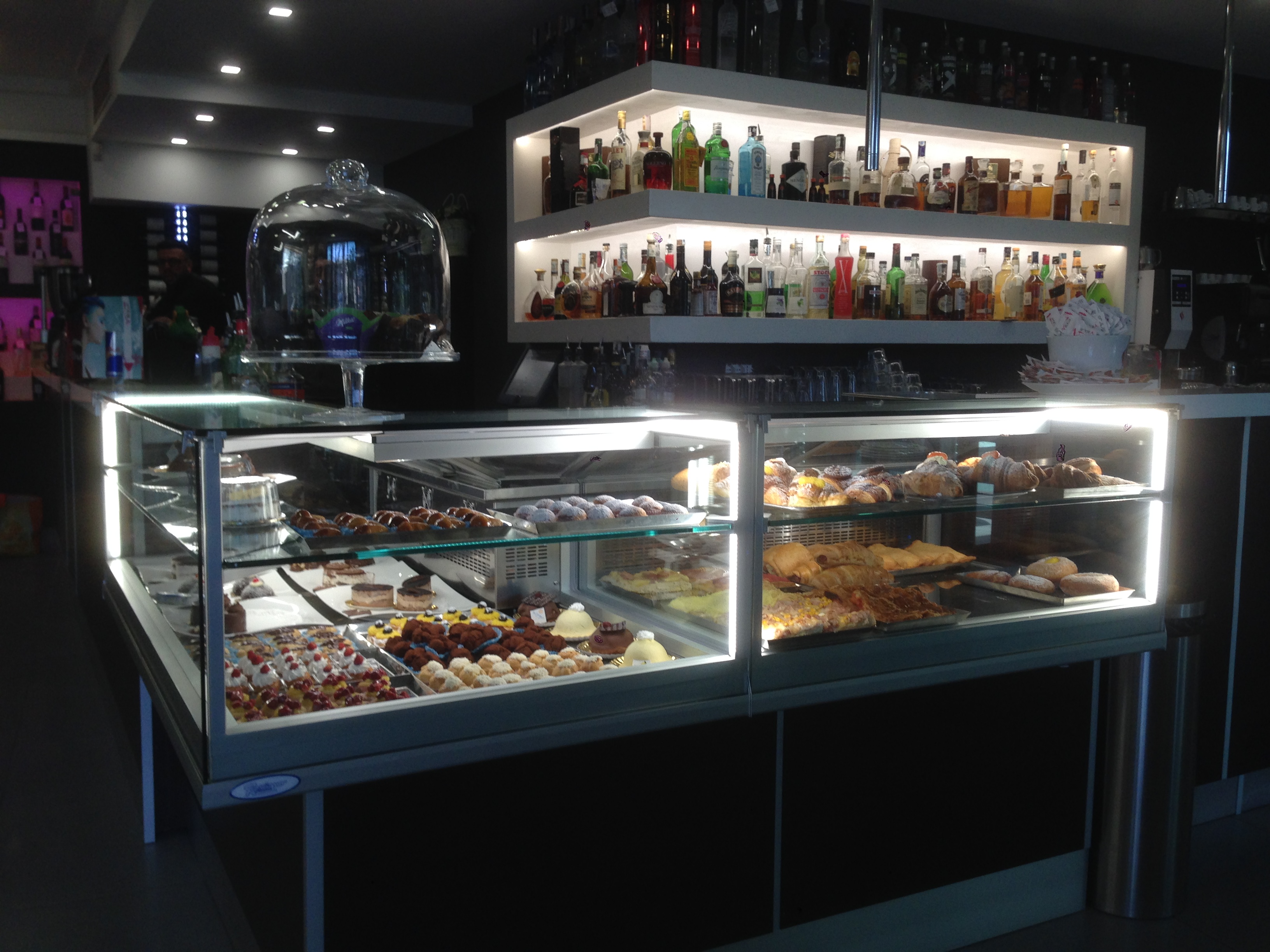 Bar Village a San Sebastiano al Vesuvio. Vetrine JUST calda/refrigerata inserite in un mondo di colori e cocktails, per un locale giovane e di tendenza.